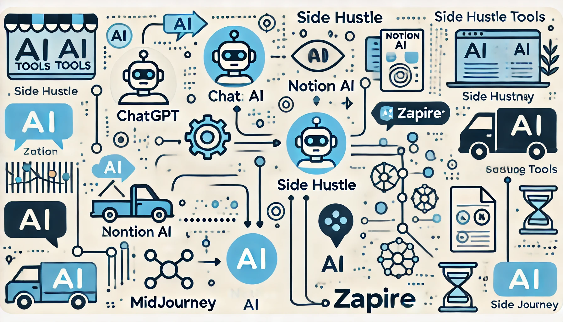 A. 콘텐츠 중심 부업은 ChatGPT나 Notion AI, 마케팅 자동화는 Zapier와 같은 워크플로우 툴부터 시작하는 것이 좋습니다.